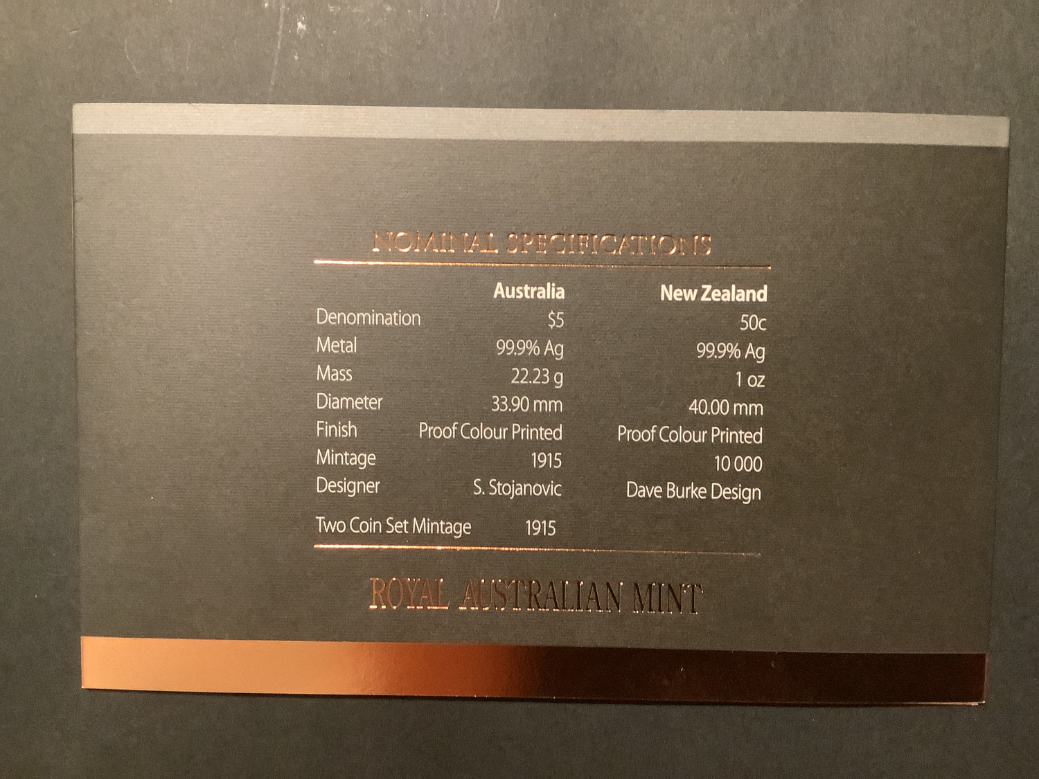 2015 Two Coin Silver Set. ANZAC Centenary is backordered and will ship as soon as it is back in stock.