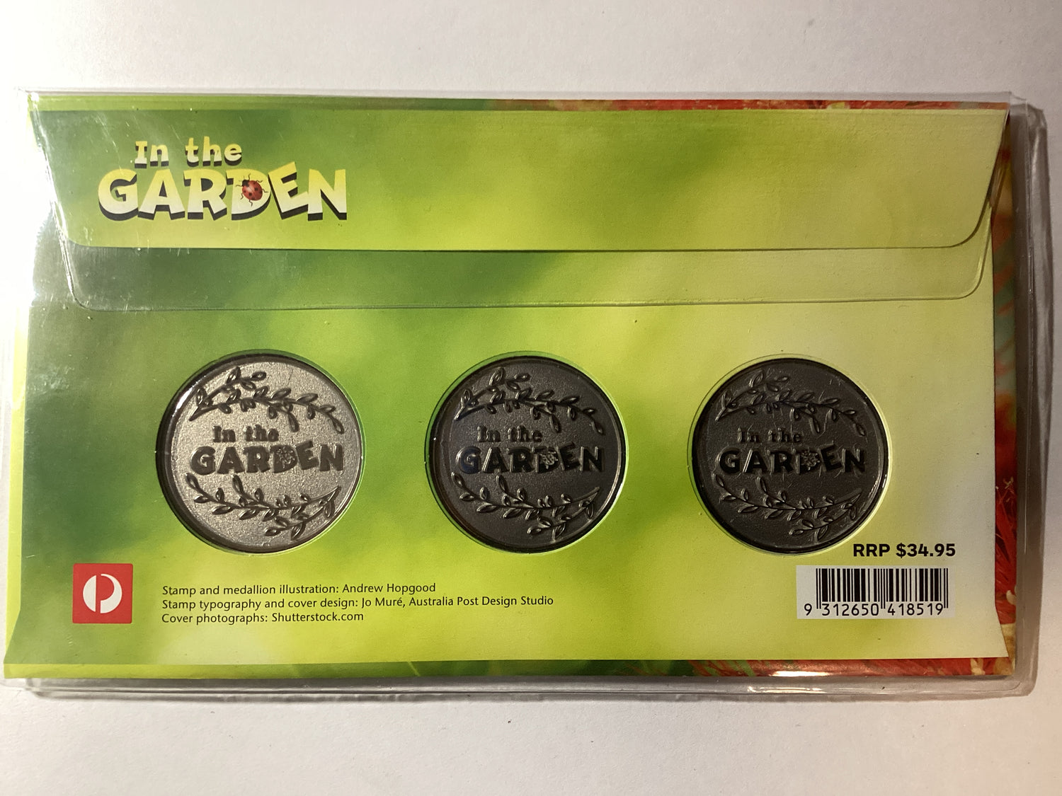 2019 In the Garden Three Medallion PMC. Nest Box, Pollinators, Veggie Garden. 1500 made.