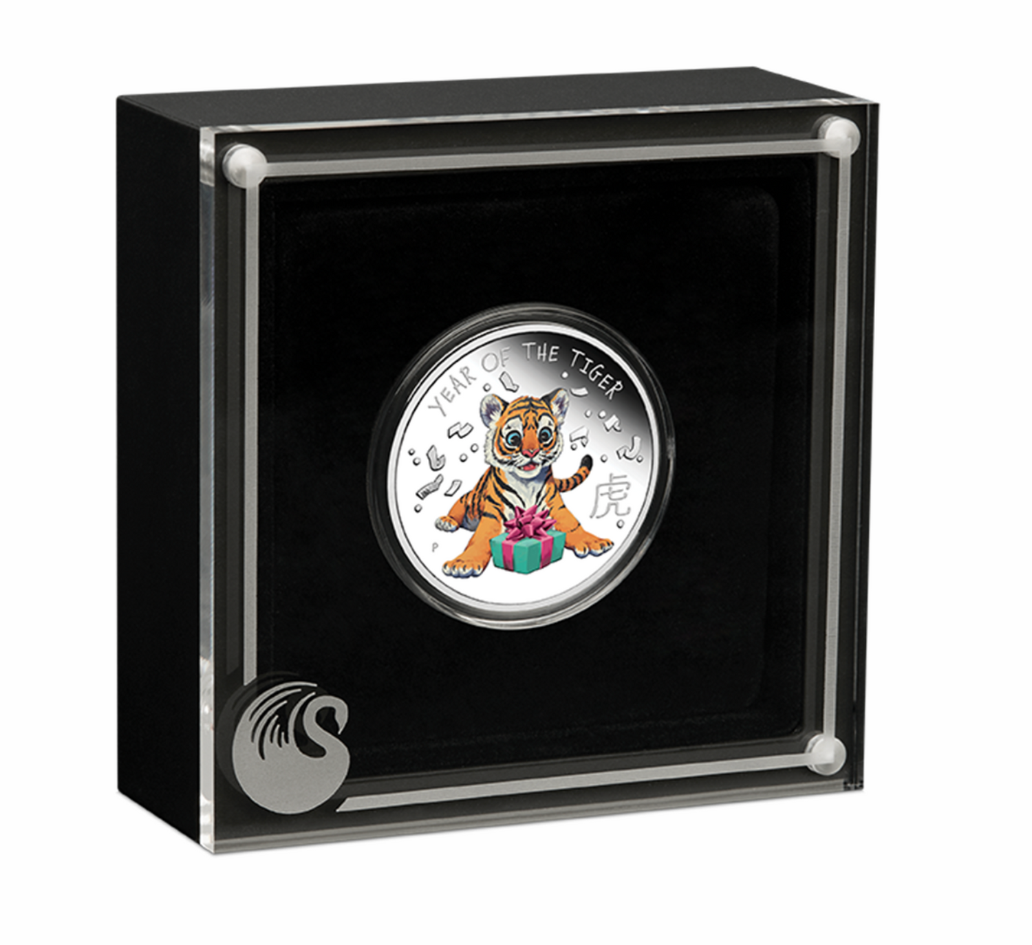 This delightful coin features a beautifully detailed design of a playful tiger cub, symbolising courage and prosperity in Chinese culture.