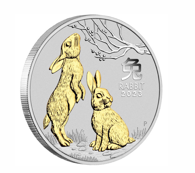 2023 Year of the Rabbit 1oz Silver Gilded Coin