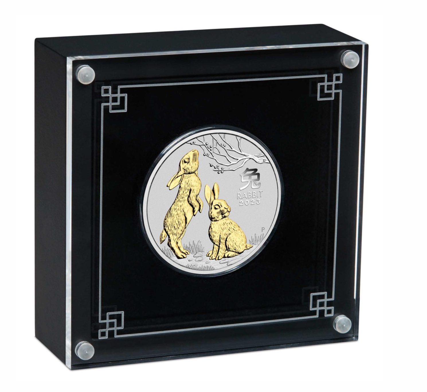 Key features: 99.99% pure silver. Gilded Year of the Rabbit design. Australian legal tender.
